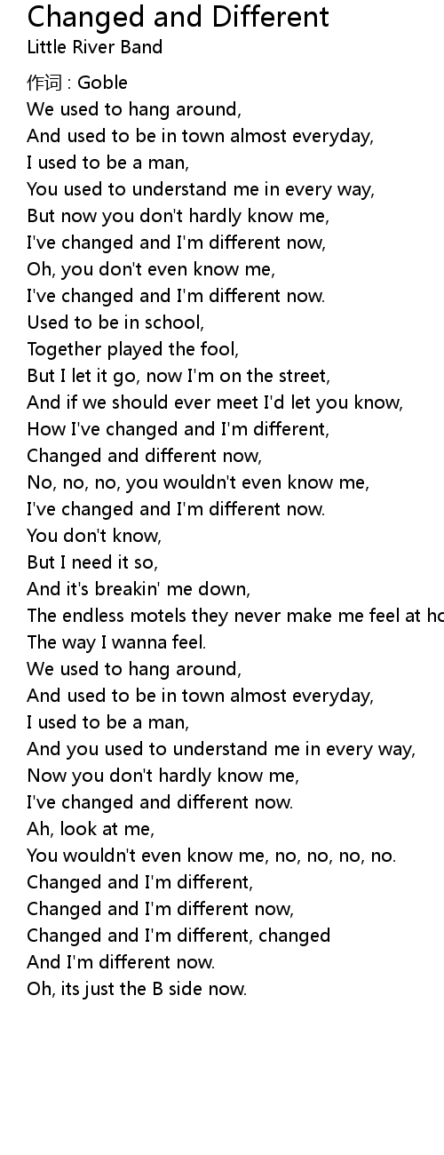| How I' ve changed and I' m different, | |