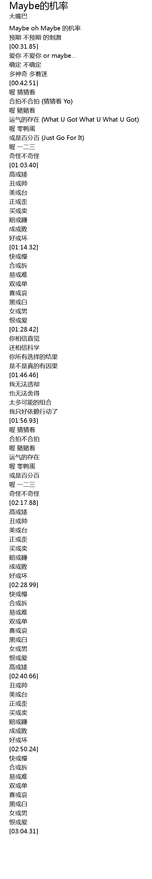 | [00:21.00] | Maybe oh Maybe 的机率 |