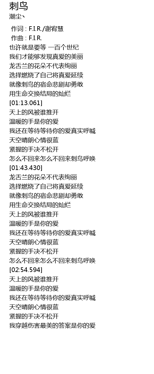 | [00:00.000] | 作词 : F.I.R./谢宥慧 |