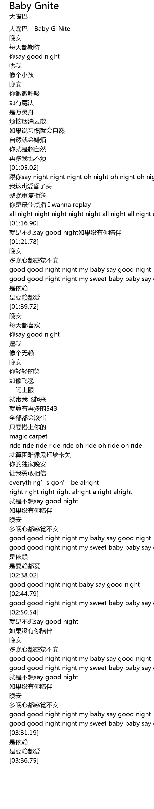 | [00:10.26] | 大嘴巴 - Baby G-Nite |