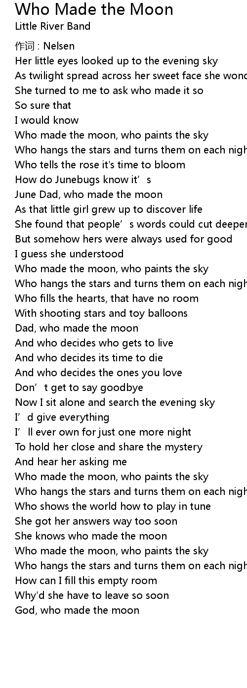 | Song | Who Made the Moon |