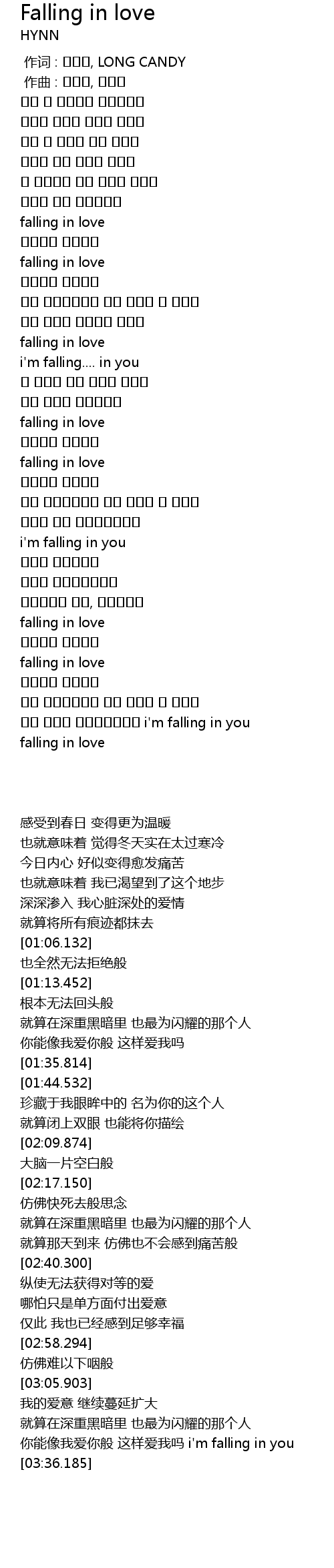 | [03:22.680] | 그댄 나만큼 사랑할수있나요 i'm falling in you |