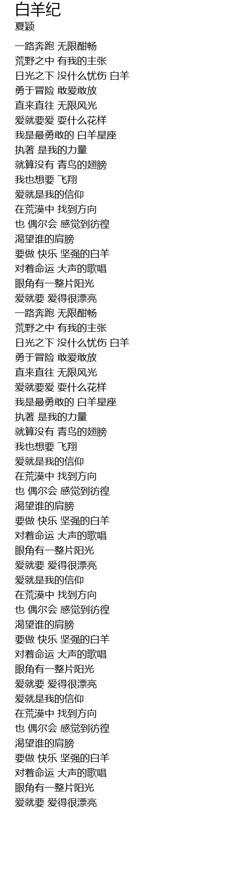 | [01:00.910] | 要做 快乐 坚强的白羊 |
