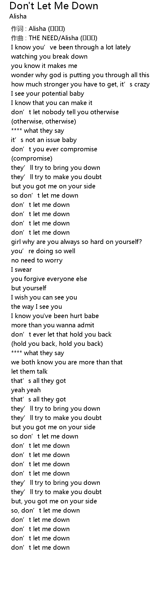 | [00:01.000] | zuo qu : THE NEED Alisha |