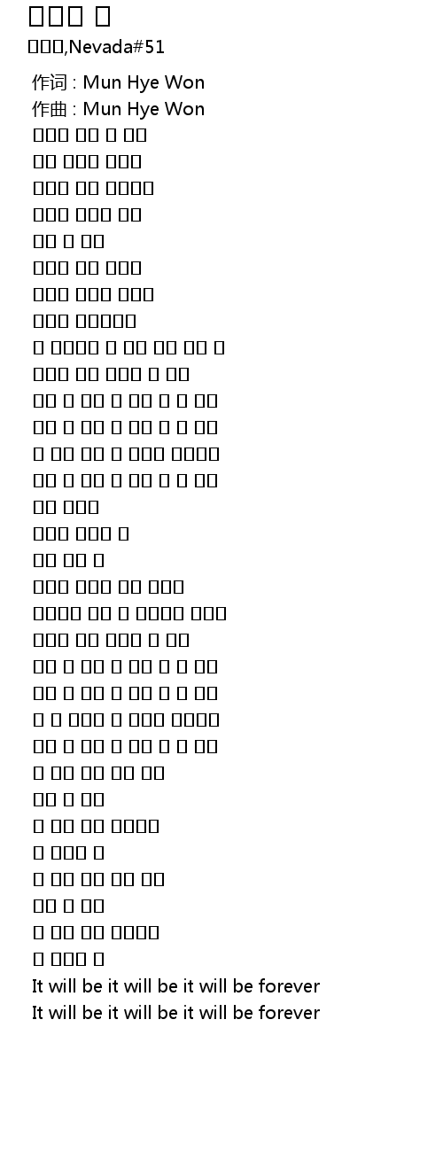 | [00:00.000] | 作词 : Mun Hye Won |
