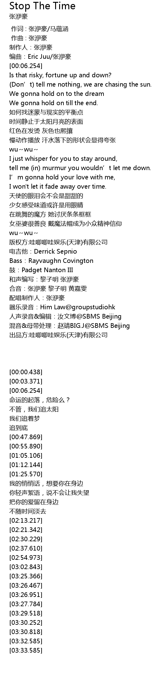 | [00:03.371] | 编曲:Eric Juu/张洢豪 |