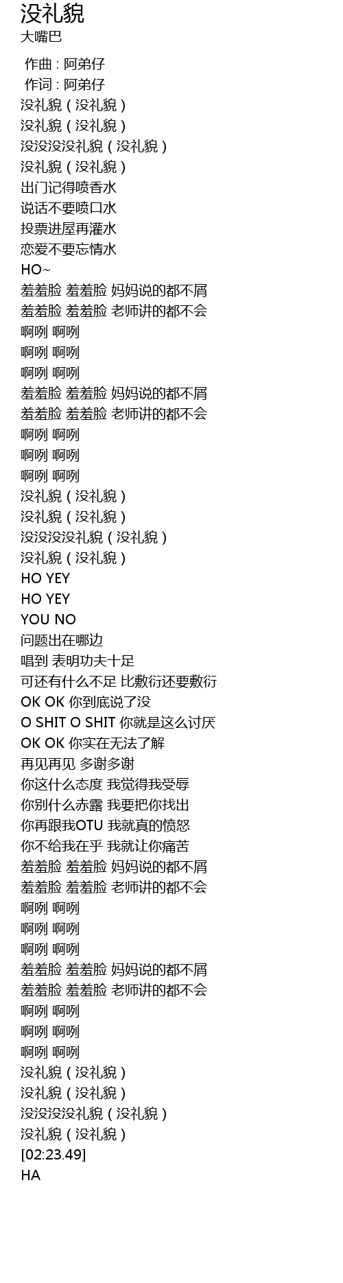 | [00:54.879] | 没没没没礼貌(没礼貌) |