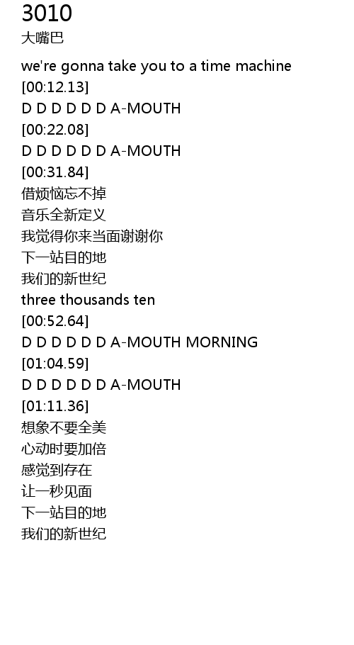 | [00:55.96] | D D D D D D A-MOUTH MORNING |