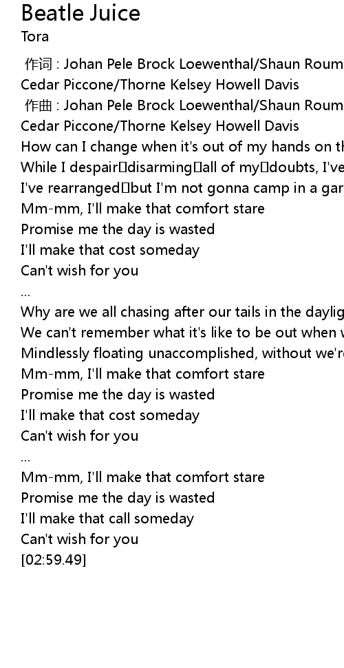 | [00:00.00] | 作词 : Johan Pele Brock Loewenthal/Shaun Rouma Johnston/Jaiendra Cedar Piccone/Thorne Kelsey Howell Davis |