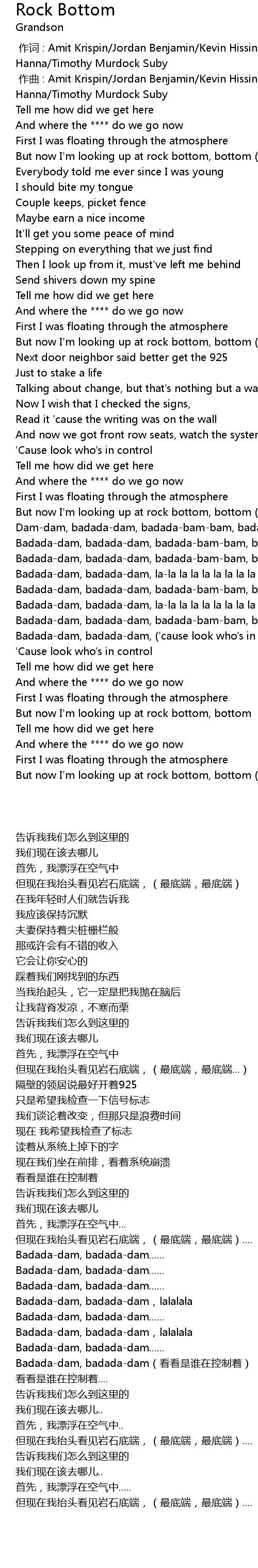 | [01:05.13] | But now I' m looking up at rock bottom, bottom bottom, bottom |