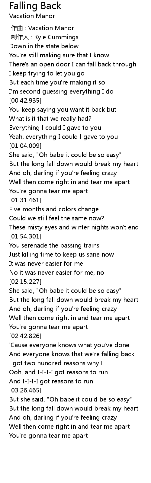 | [03:01.246] | And everyone knows that we' re falling back |