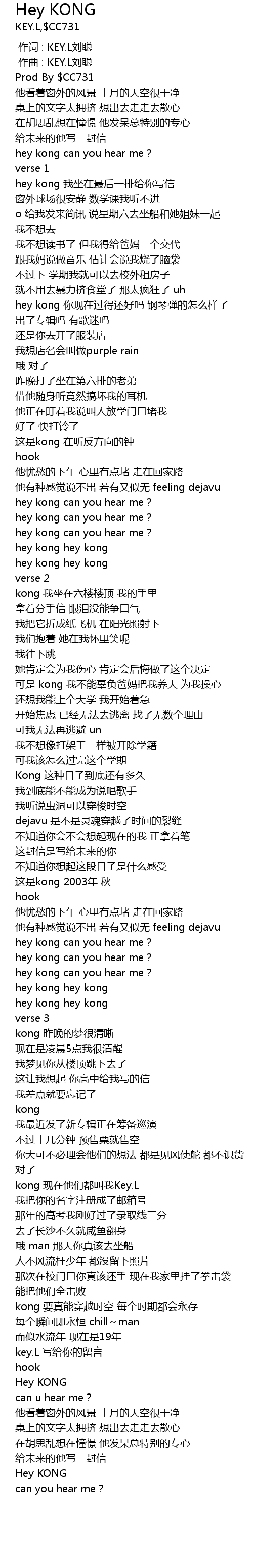 | [00:00.000] | 作词 : KEY.L刘聪 |