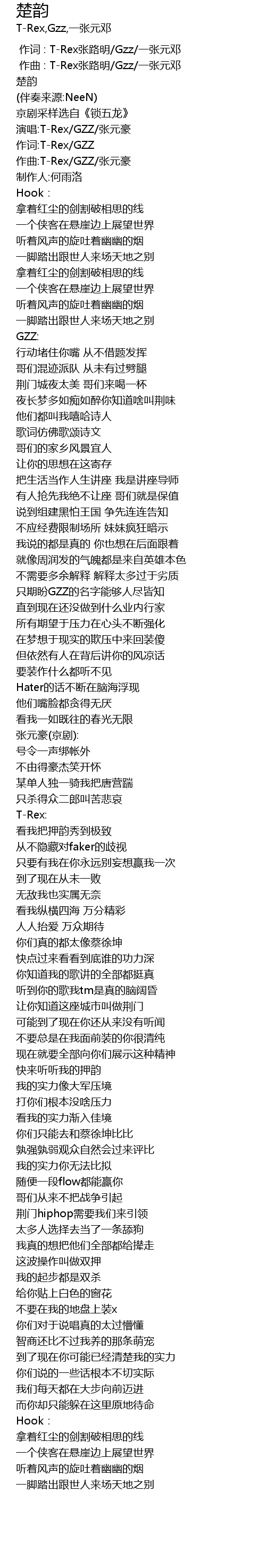 | [00:12.423] | 演唱:T-Rex/GZZ/张元豪 |