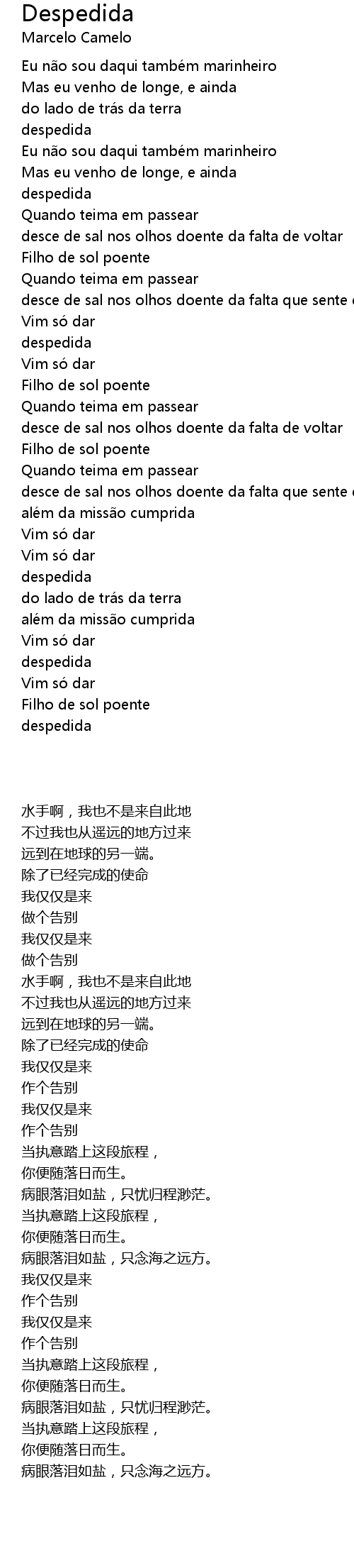 | [00:01] | Eu n o sou daqui tambe m marinheiro |