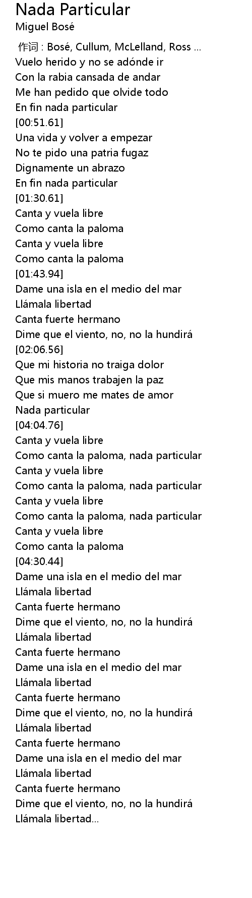 | [00:00.00] | zuò cí : Bosé, Cullum, McLelland, Ross ... |