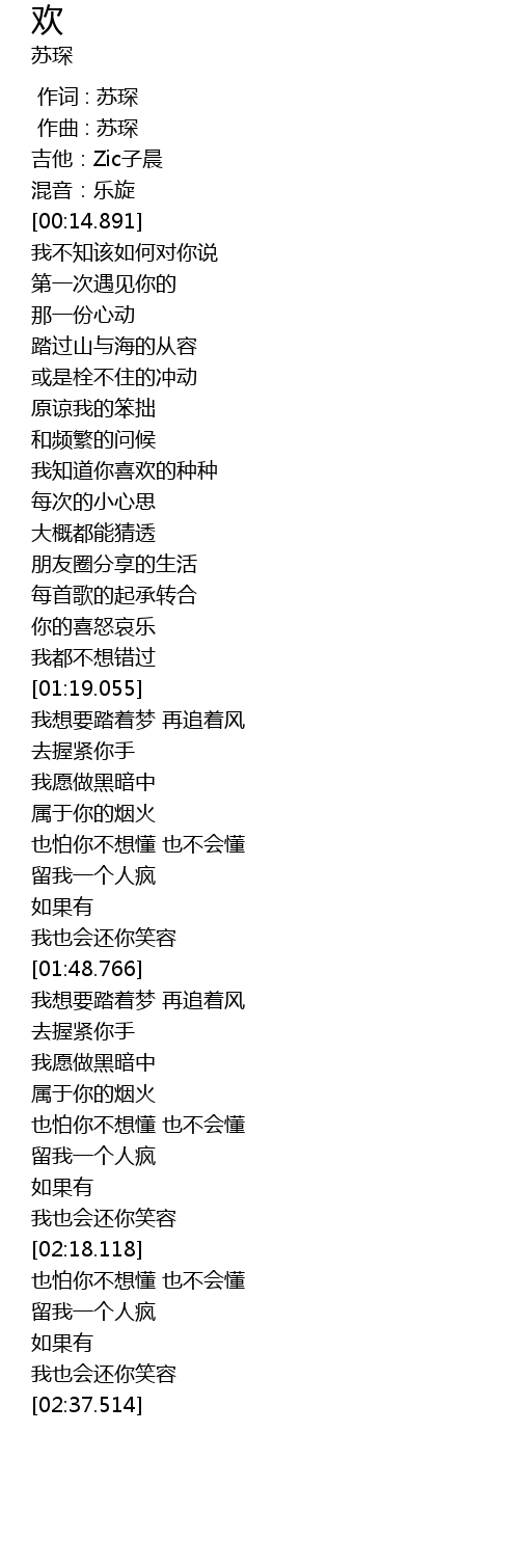 | [00:00.000] | 作词 : 苏琛 |
