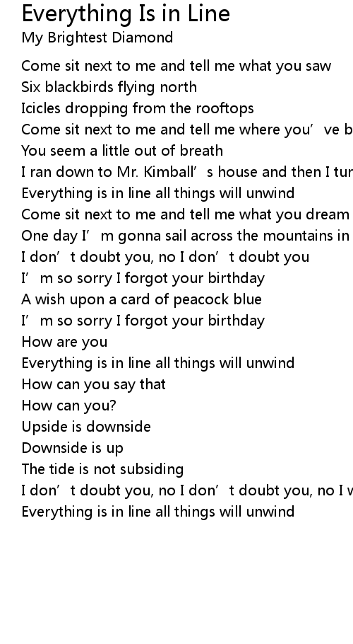 | Song | Everything Is in Line |