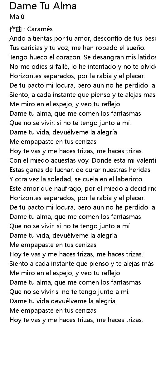 | Dame tu vida, devue lveme la alegri a | |