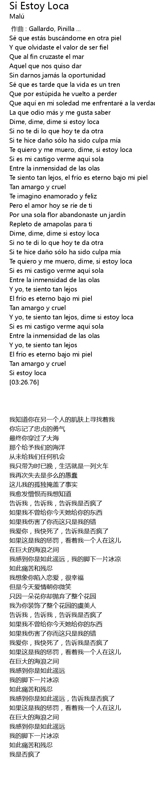 | [01:20.35] | Te quiero y me muero, dime, si estoy loca |