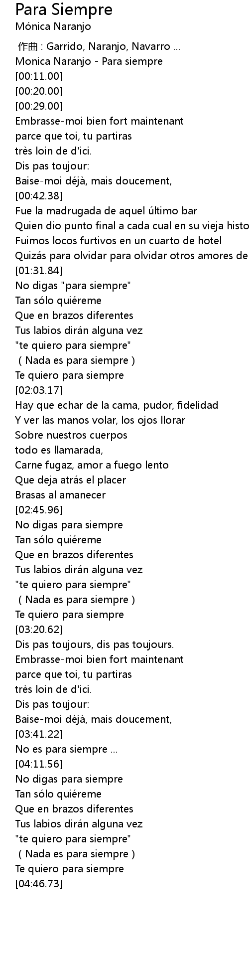| [04:33.96] | "te quiero para siempre" |