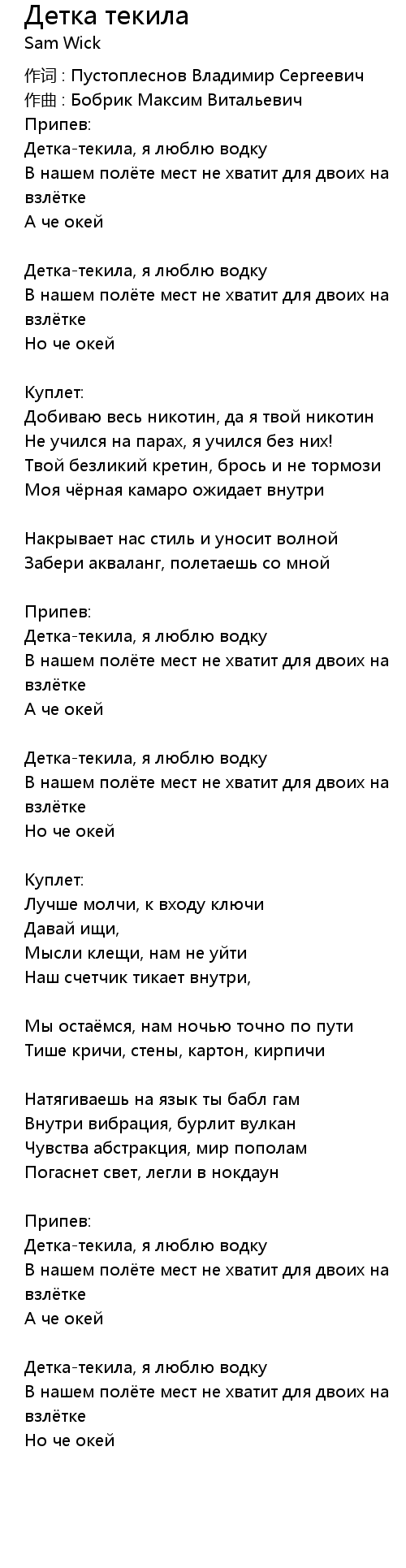 Детка-текила, я люблю водку |