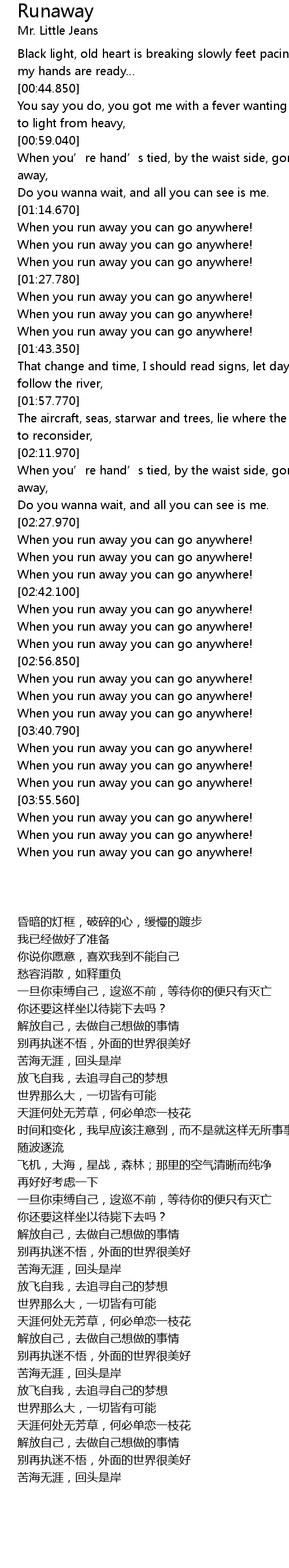 | [02:30.910] | When you run away you can go anywhere! |