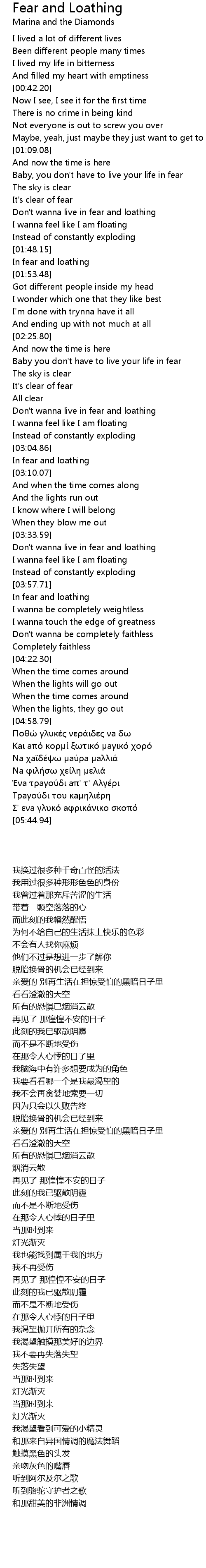 | [03:43.40] | Don't wanna live in fear and loathing |