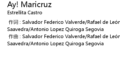 | [00:00.00-1] | 作曲 : Salvador Federico Valverde/Rafael de León Arias Saavedra/Antonio Lopez Quiroga Segovia |