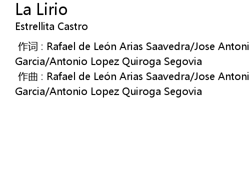 | [00:00.00-1] | 作曲 : Rafael de León Arias Saavedra/Jose Antonio Ochaita Garcia/Antonio Lopez Quiroga Segovia |