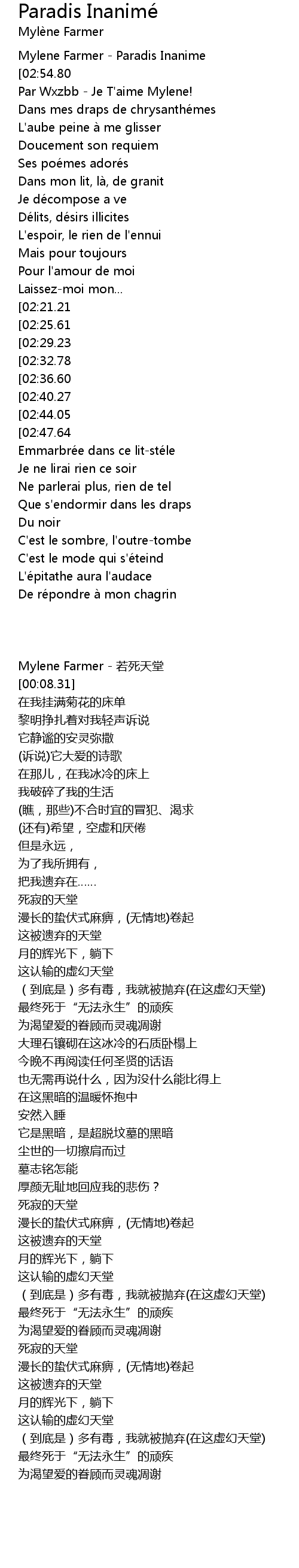 | [00:01.12] | Mylene Farmer - Paradis Inanime |