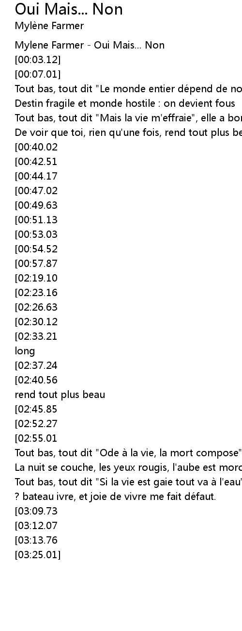 | [00:00.00] | Mylene Farmer Oui Mais... Non |