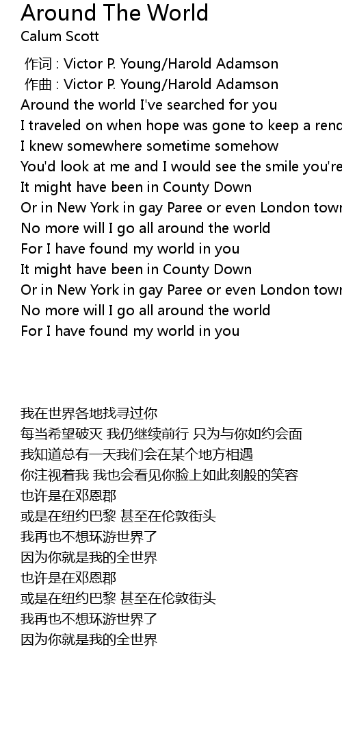 | [00:07.28] | Around the world I' ve searched for you |