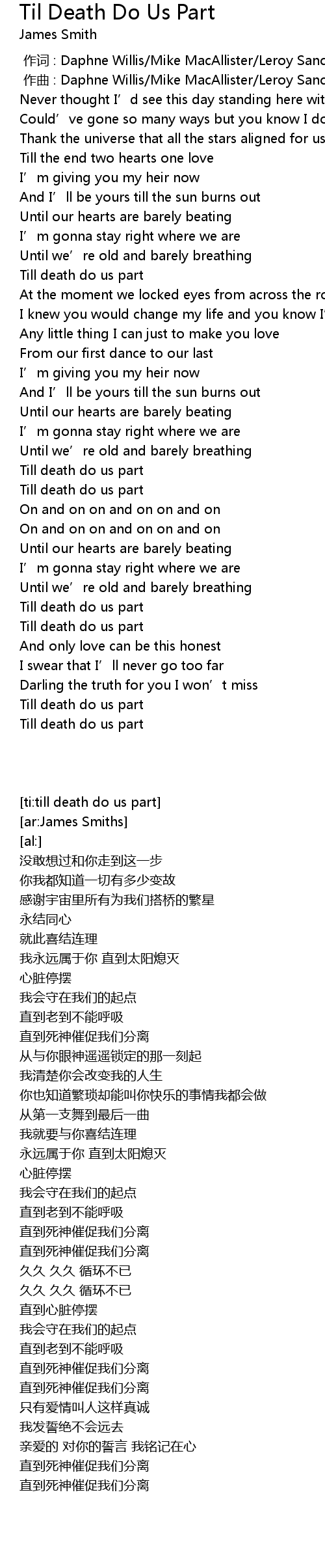 | [01:55.17] | Till death do us part |