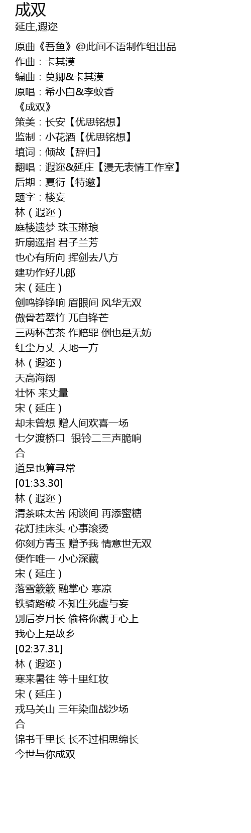 | [02:56.06] | jīn shì yǔ nǐ chéng shuāng |