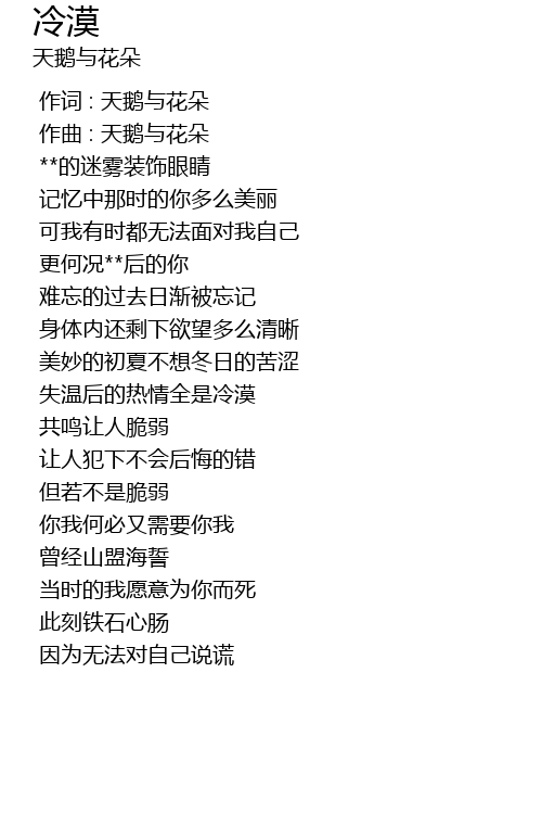 | [00:00.000] | 作词 : 天鹅与花朵 |