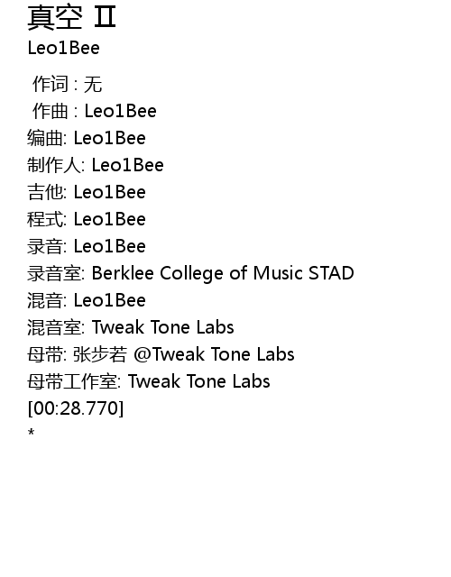 | [00:24.008] | 母带: 张步若 @Tweak Tone Labs |