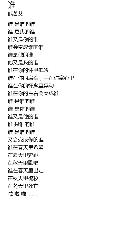 | [00:57.390] | shuí yòu shì nǐ de shuí |