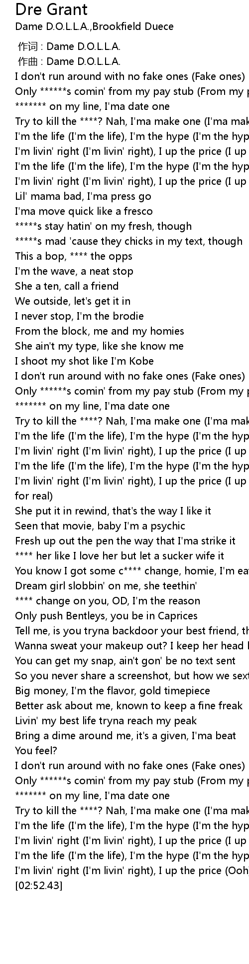 | [00:00.00] | 作词 : Dame D.O.L.L.A. |