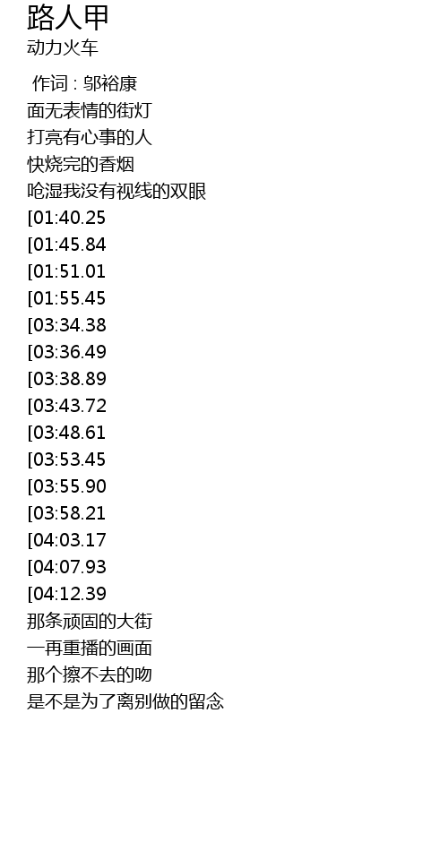 | [04:49.37][03:43.72][02:11.60] | 我是你转头就忘的路人甲 |