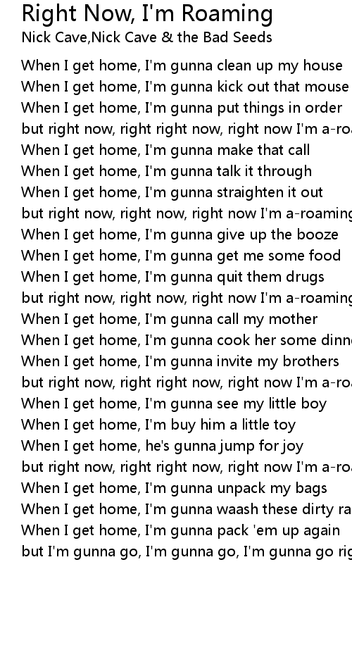 but right now, right now, right now I'm a-roaming |