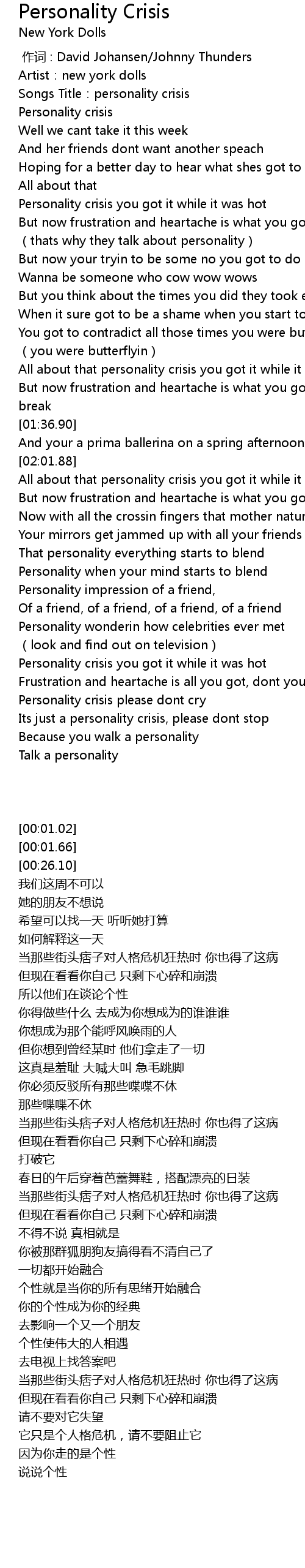 | [00:38.53] | Personality crisis you got it while it was hot |