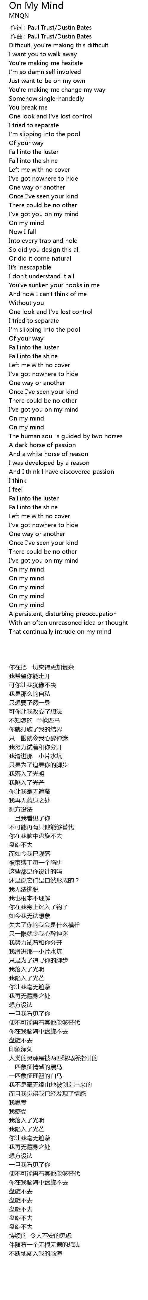 | [02:38.81] | On my mind |