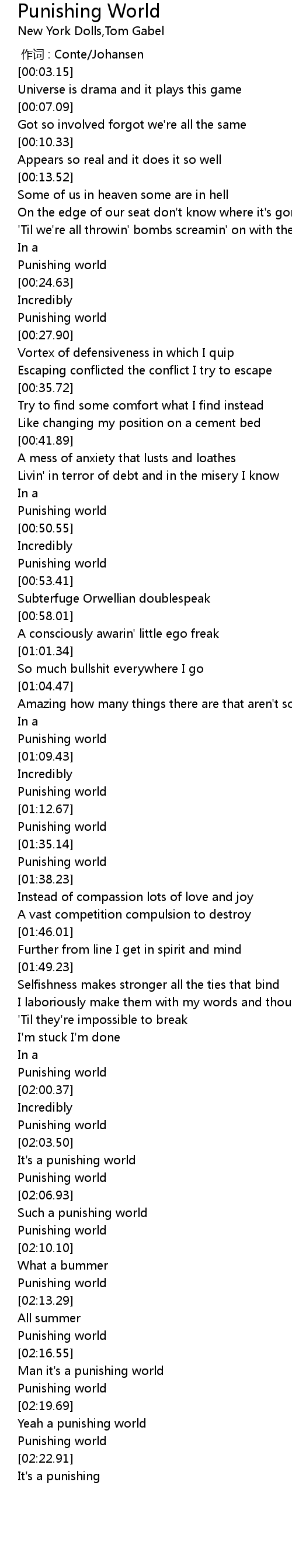 | [02:02.77] | Punishing world |