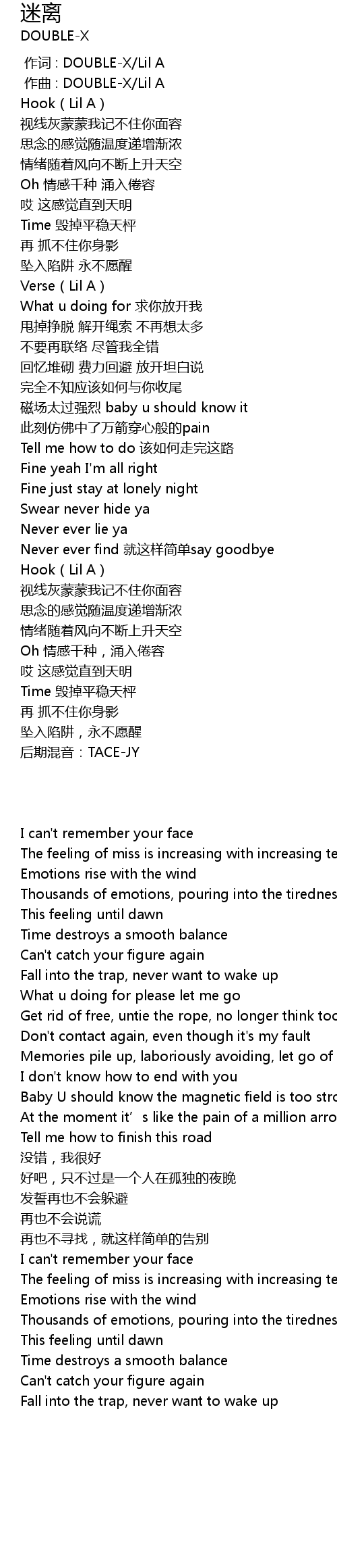 | [00:00.00] | zuò cí : DOUBLEX Lil A |