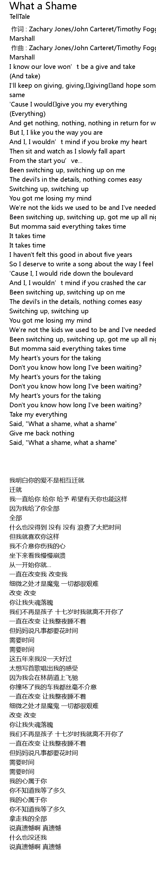 | [02:57.677] | Said, " What a shame, what a shame" |