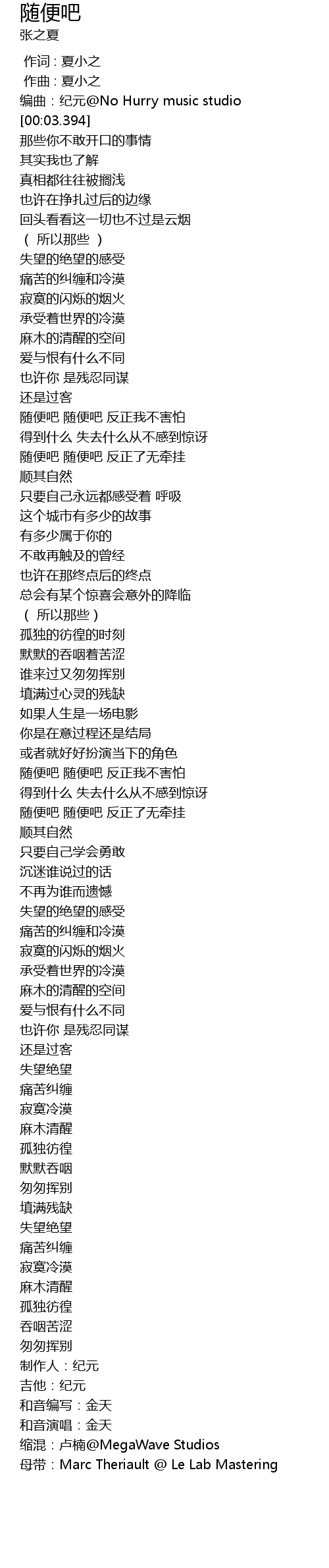 | [03:54.238] | 缩混:卢楠@MegaWave Studios |