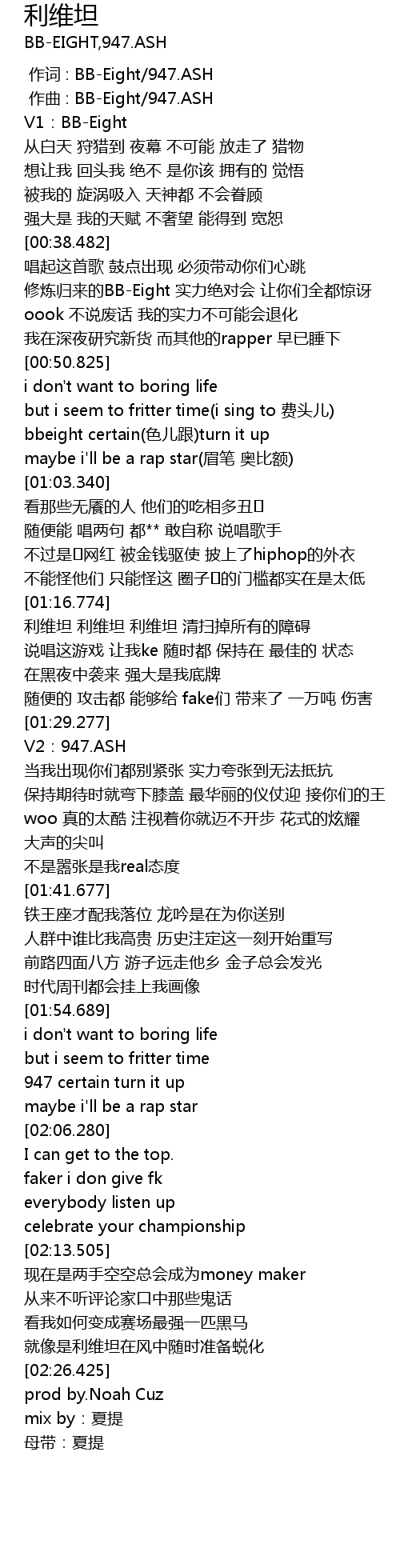 | [00:01.000] | 作曲 : BB-Eight/947.ASH |