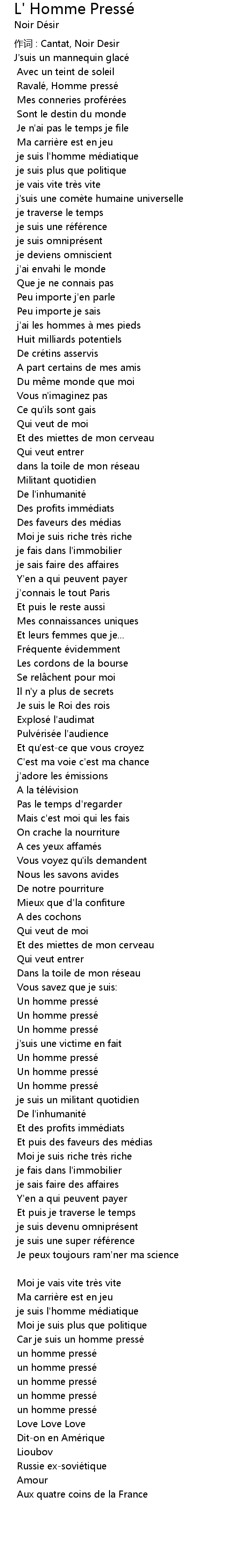 | 作词 : Cantat, Noir Desir | |