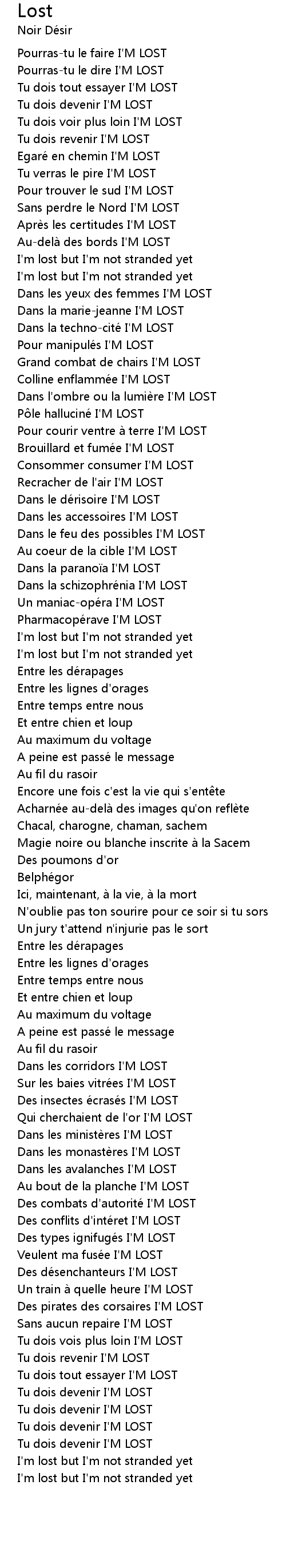 | Dans l' ombre ou la lumie re I' M LOST | |