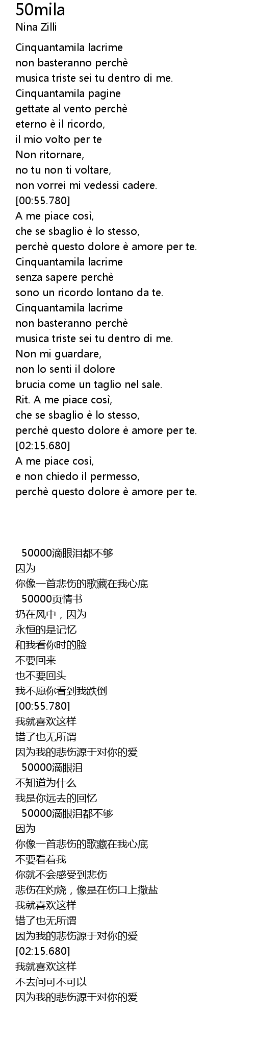 | [02:39.430] | perchè questo dolore è amore per te. |